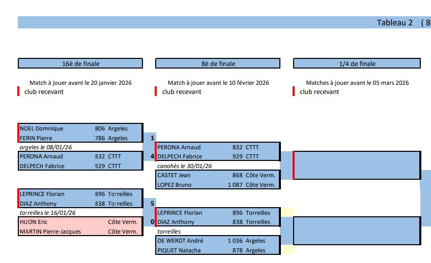 Vendredi prochain (16 janvier) l’équipe de coupe du Roussillon composée de Florian LEPRINCE et Anthony DIAZ recevra le club de côte Vermeille à la salle de la Fraternité de Torreilles.